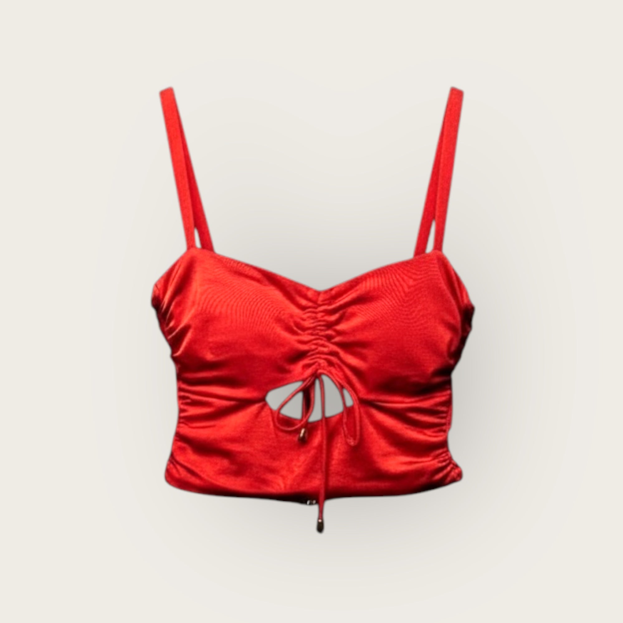 A fresh take on the classic tankini - reimagined with just the right mix of structure and style. This sleek crop-style top features delicate over the shoulder straps, a front keyhole cutout, and a feminine bow tie detail. Built-in boning and a secure hook-and-eye closure offer light support and a smooth fit, so you feel as good as you look. Flattering, versatile, and effortlessly chic - it’s your go-to for sun, swim, and everything in between.