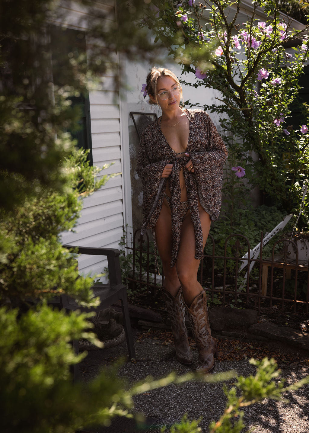 Wild by nature, effortless by design. The Long Beach Island Wrap top in Animal is the ultimate chameleon piece. Crafted to complement our Animal Collection, but made to go far beyond the beach. With long, flowy sleeves and a wrap-front silhouette, it can be styled multiple ways: tied at the front, wrapped at the waist, or left open. Lightweight and breathable, it’s the perfect cover-up by day and your go-to statement layer by night.